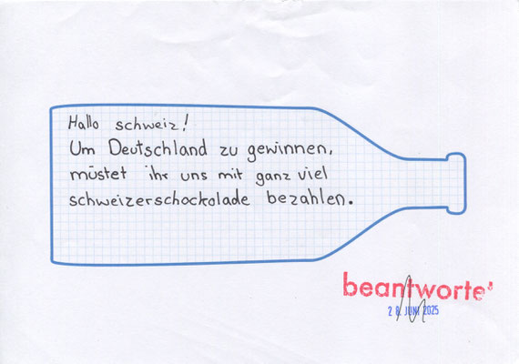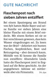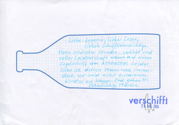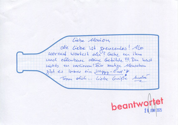 Letzte Woche wie berichtet Flaschenpostantworten verschickt, diese Woche gibt es von Flaschenpostantwortantworten zu berichten, die im Flaschenpostversandzentrum eingelangt sind. Wie toll! Leider kann ich sie nicht zustellen – vielleicht werden sie hier gelesen?